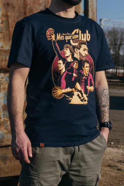 High-quality T-shirt designed and sewn from scratch in Europe. The model is intended for fans of FC Barcelona. The T-shirt presents players who have gone down in the history of the club in a unique way. The print show well-known players such as Messi, Hristo Stoichkov or Cruijff, but also, unfortunately, a bit forgotten Rodriguez and Kubala. In one sentence, something for real True Maniacs.This T-shirt contains: